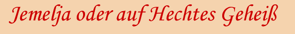 „Sprich leise: "Auf Hechtes Geheiß, nach meinem Willen sei´s!" Und dann nenne deinen Wunsch“. Jemelja sagte: „Auf Hechtes Geheiß, nach meinem Willen sei´s - die Eimer voll Wasser geht allein nach Haus´.“ Und die Eimer glitten von selber nach Hause! Jemelja legte den Hecht ins Eisloch zurück und ging hinter den Eimern her. Die Eimer gingen ins Haus hinein und stellten sich von selbst an ihren Platz.