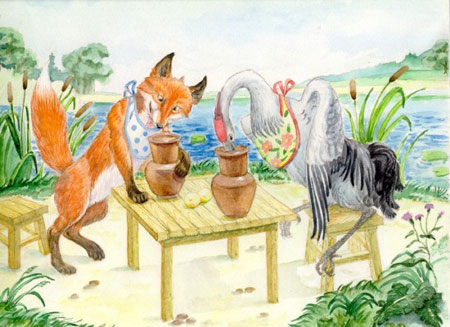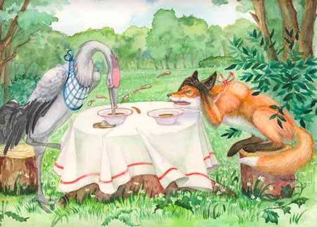 ine Füchsin und ein Kranich hatten miteinander Freundschaft geschlossen. Eines Tages wollte die Füchsin