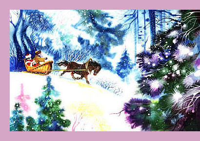 Das Mädchen hielt inzwischen unter einer Tanne an und hörte ein Krachen in den Ästen, das war der gestrenge Frost, der von Baum zu Baum sprang, die Äste