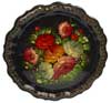 Tablett Schwarz, rund Durchmesser: 36cm, Metall, Handbemalung. Hersteller: Fabrik für dekorative Lackbemalung Schostowo. MEHR INFO € 32,00