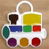 Wasserfarbe Dampflok 9 Farben; ein Pinsel ist nicht beigelegt. Die Farben trocknen schnell und lassen sich mit Wasser auswaschen; mit Honigzusatz. Hersteller: Fabrik "Lutsch", Jaroslawl, Russland. MEHR INFO € 1,80