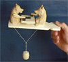 Bären spielen Schach Grundstoff: Linde. Maße: H 8cm, Grundfläche: 19cm x 5cm. Das Spielzeug ist in der traditionellen Technik der Bogorodskoje-Schnitzerei gefertigt. MEHR INFO € 7,65