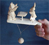 Hase tanzt zum Klavier Grundstoff: Linde. Maße: H 10cm, Grundfläche: 17cm x 4,5cm. Das Spielzeug ist in der traditionellen Technik der Bogorodskoje-Schnitzerei gefertigt. MEHR INFO € 7,65