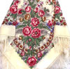 Schal Frühlingsmorgen Größe: 125cm x 125cm, der Hintergrund ist weiß, 100% Wolle, mit Seidequasten, Hersteller: Pawlower Schalmanufaktur. Autorin: Irina Dadonowa. MEHR INFO € 38,00