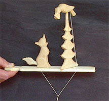 Grundstoff: Linde. Maße: H 12,6cm, Grundfläche: 16,5cm x 5cm. Das Spielzeug ist in der traditionellen Technik der Bogorodskoje-Schnitzerei gefertigt.