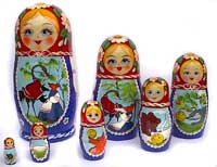 Höhe: 16cm; Holz; besteht aus 7 ineinandergelegten Einzelstücken. Die kleinste Matroschka ist etwa 2cm groß.
