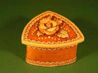 Die Schatulle wurde aus sibirischer Birkenrinde hergestellt. Die Höhe beträgt 6,5 cm, die Länge 15 cm und die Breite 15 cm. Die Rinde ist mit einer dünnen Wachsschicht überzogen und ist unempfindlich für Feuchtigkeit. AAußerdem können sich in ihr nie Pilze oder Schimmel bilden.