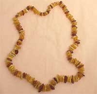 Bernstein, Gesamtlänge: 62 cm, Größe der Einzelstücke: bis 2 cm.