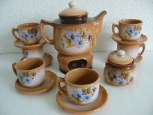 21-teilig, für 6 Personen (Teekanne, Zuckerdose, ein Ständer zum Aufwärmen, 6 große Teller (in der Abbildung nicht zu sehen), 6 Tassen mit Untertassen), Keramik, Belarus.