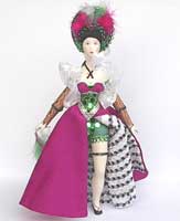 Höhe: 26 cm. Materialien: Porzellan,, Baumwolle, Zamt, Kunststickerei. Handarbeit.